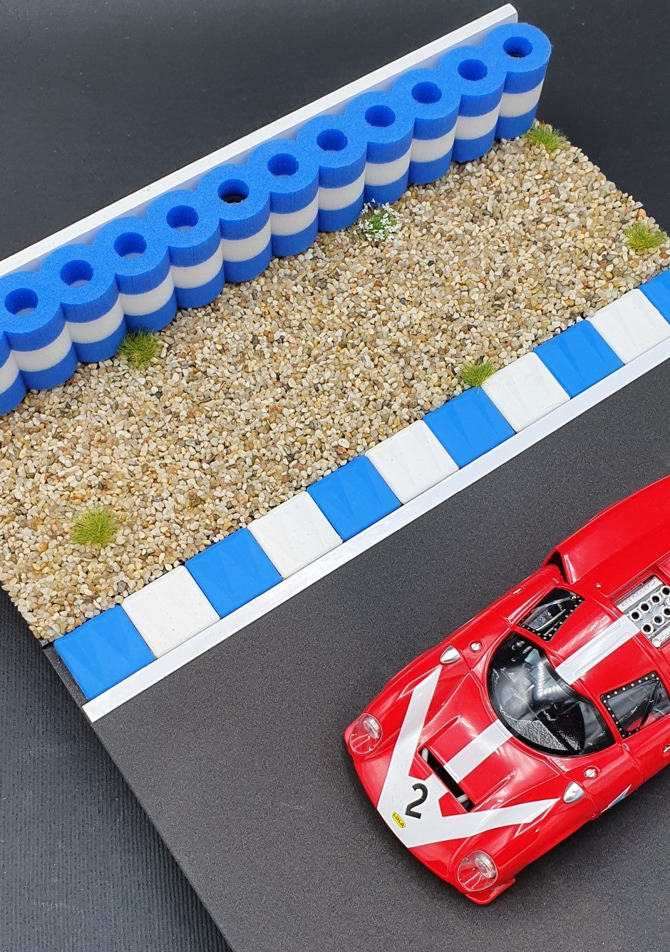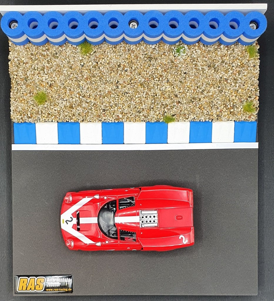 A fond dans la pile de pneus ! Pas de problème avec notre pile de pneus de modélisme pour les circuits Carrera, longueur 25cm BLEU BLANC pour les échelles 1:32 - 1:24 - pile de pneus Carrera Rennbahn