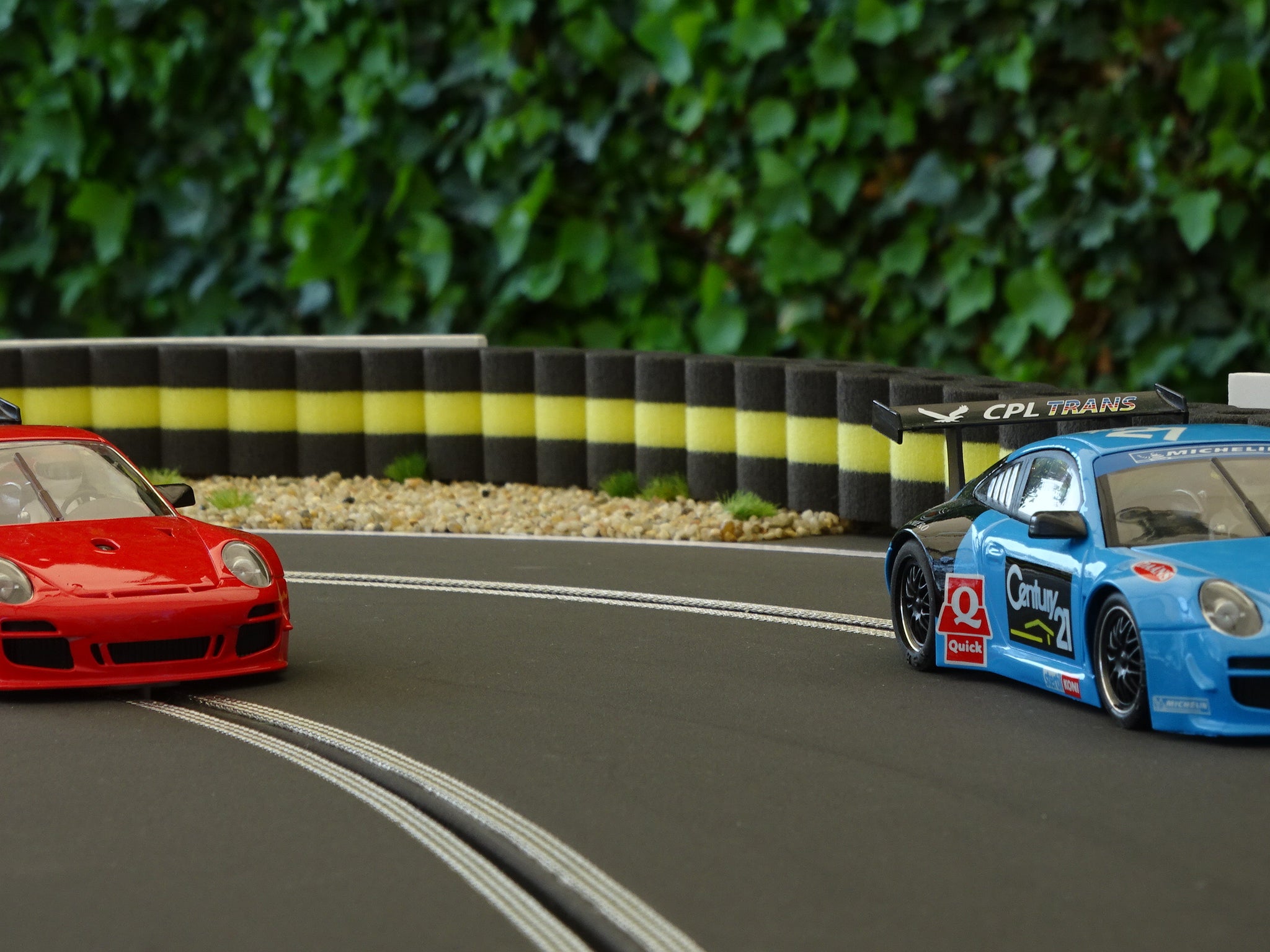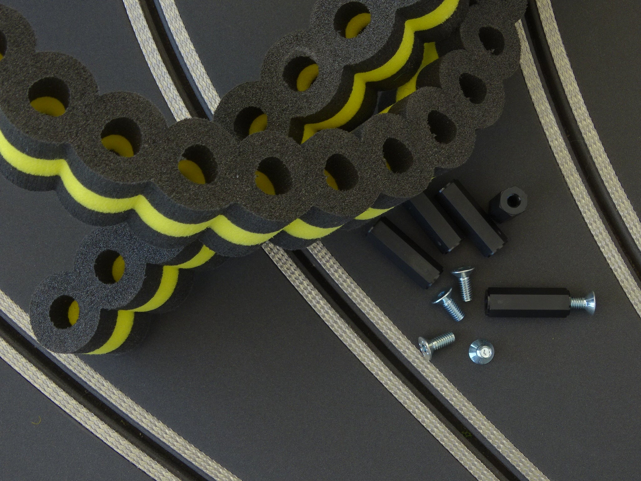 A fond dans les glissières de sécurité ! Pas de problème avec nos piles de pneus > pour les circuits Carrera NOIR JAUNE 1:32 - 1:24